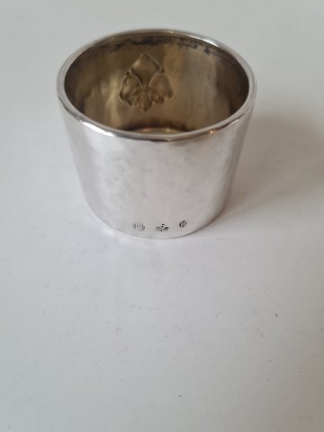 Servietring i sølv dekoreret med fransk lilje fra 1922 Stemplet de tre tårne Bredde 3,2 cm. Diameter 4 cm.