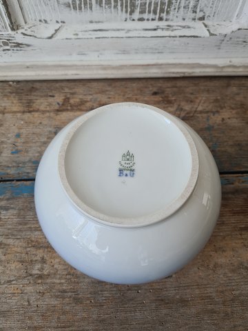 B&G Mågestel med guldkant stor kugle vase 1. sortering Højde 10 cm. Diameter 16 cm. Produceret mellem 1915-48