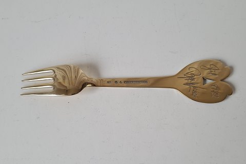 A.Michelsen Christmas fork in gilded sterling silver with enamel 1972 Stamped: A.Michelsen - Sterling - Denmark Length: 16 cm. Design: Bjørn Wiinblad