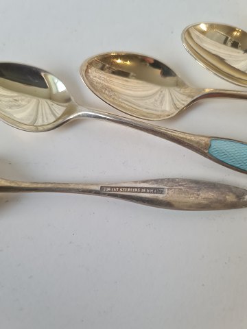 Sæt på 6 stk Frigast mokkaskeer i forgyldt sterlingsølv med emalje Stemplet: Frigast - Sterling - Denmark Længde 9,5 cm.