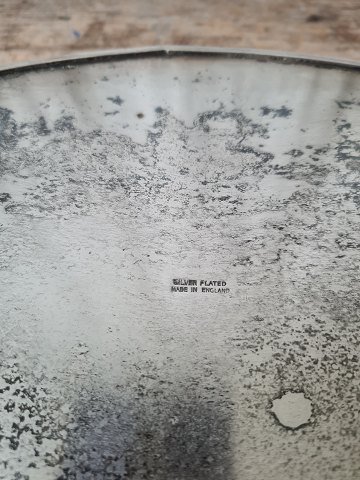 Oval silver plated tray with gallery edge, the tray stands on small "ball and claw feet" Stamped: Silver plated - made in England Dimensions 31 x 42 cm. Height 7 cm.