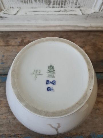B&G vase decorated with flowering branches and blue butterfly No. 144/4, Factory first Height 16 cm. Diameter 16 cm.