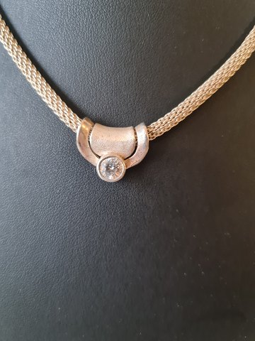 Vintage halskæde i sølv med vedhæng prydet med zirkon Stemplet: 925 - JMA Længde på kæden 43 cm. Bredde på kæden 4 mm. Mål på vedhænget 15 x 19 mm.