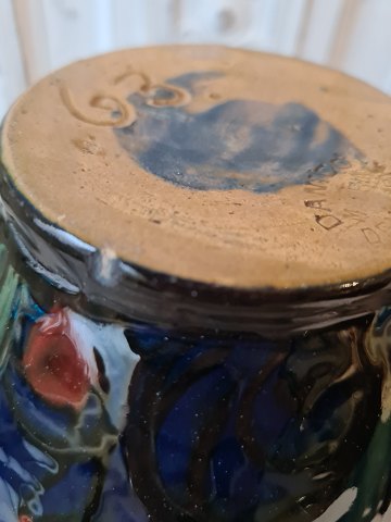 Danico stor midnatsblå vase dekoreret med grønne blade og røde bær