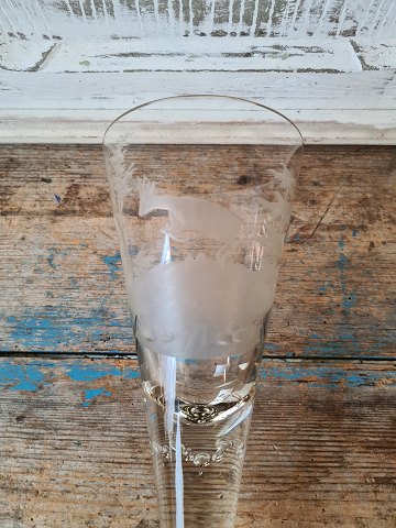 Pokal glas fra Kastrup glasværk ca. 1910 dekoreret med slebet dekoration i form af skovparti med hjort Højde 28 cm.
