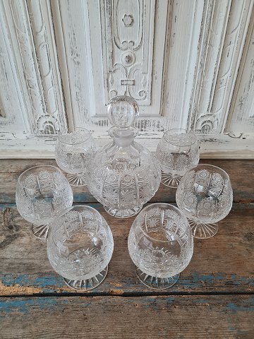 Sæt på 6 cognac glas samt karaffel i slebet krystal