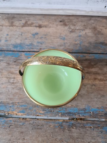 1800s sugar bowl in light green opaline glass with brass mounting Height 7 cm. Diameter 12 cm.
