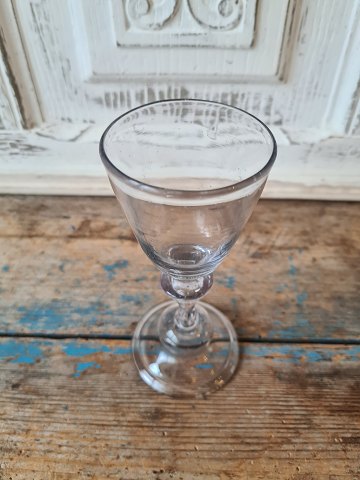 Barokglas Kalkformet kumme på balusterformet stilk, rund klokkeformet fod med ombukket rand. Højde 15,8 cm.
