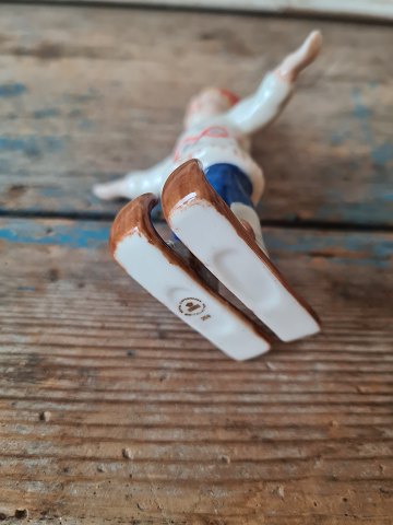 Royal Copenhagen Figur, Pixie nisse på ski No. 259, 1. sortering Højde 9 cm. Fremstår med reparation, den ene ski er limet - se billed