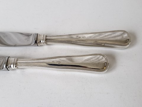 Dobbeltriflet middagskniv i sølv og stål 22,2 cm.
