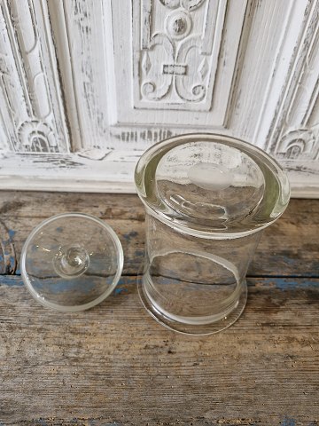 Gammelt mundblæst diskeglas med kantet lågknop