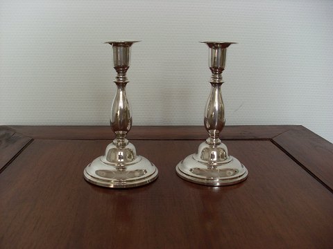 Par danske sølvstager. 16 cm. høje. Den ene lysestage fremstår med lille bule på manchet.