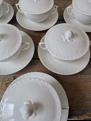Royal Copenhagen Hvid halvblonde bouillonkop med låg og underkop