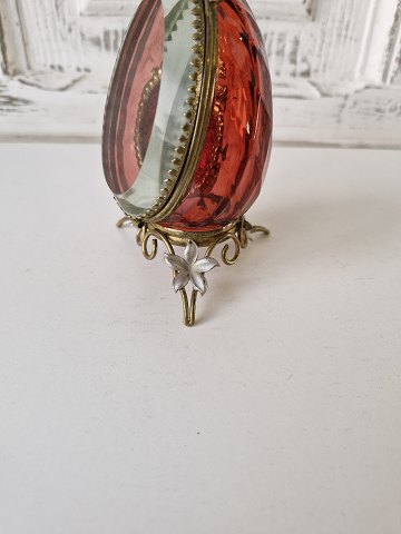 Art Nouveau ægformet ur skrin i hindbærfarvet glas med forgyldt montering