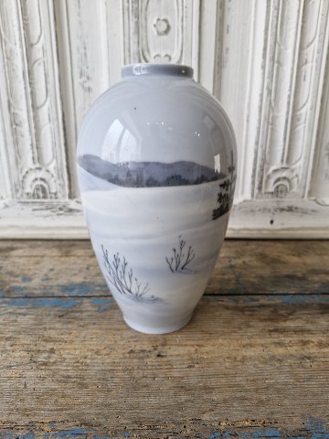 Royal Copenhagen Art Nouveau vase decorated with crows flying over a winter landscape no. 1412/47D