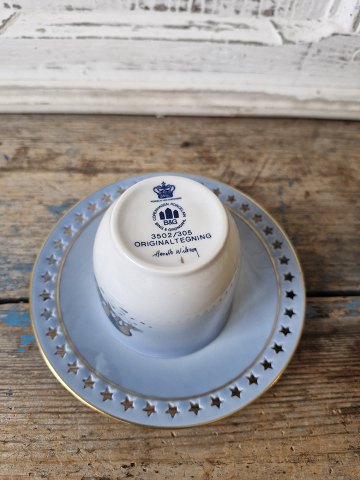 B&G Harald Wiberg Julestel kaffekop No. 3502/305, 1. Sortering Mål på koppen: Højde 6,5 cm. Diameter 7 cm. Diameter på underkoppen 13,8 cm. Lager: 1