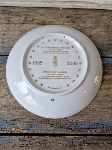 B&G Jule jubilæumsplatte 1895-2000 Stjerne ved Bethlehem 1. sortering Diameter 23 cm. Design: Johannes Achton Friis