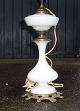 Olielampe omlavet il el af hvid opaline gals, monteret op messing fod med græsk evigheds mønster. Højde incl. fatning 46cm.