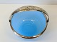 1800tals sukkerskål i sart himmelblå opalineglas, monteret med forsølvet hank.