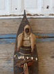 Gammel Grønlandsk kajakmodel udført i skind, træ og ben.