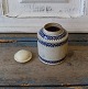 Smuk 1700tals tedåse i fajance med enkel blå dekoration. Fremstår med hårrevne samt små afslag. Højde 11cm. Diameter 8cm.