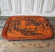 Stor gammel fransk orange metal bakke 46 x 62 cm.