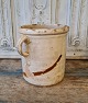 Beautiful old earthenware jar with beautiful cream-colored glaze. Appears with glaze defects on one side - see picture. Height 18.5 cm. Diameter 16 cm.