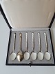 Sæt på 6 mokkaskeer i forgyldt sterlingsølv og emalje Stemplet: E.La - Sterling - Denmark Længde 9,5 cm. Leveres i original æske
