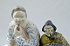 Tre figurer i glaseret keramik med motiv af To siddende sømænd i glaseret keramik og et egern med mat glasering.