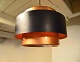 Kobberlampe model Saturn, designet af Jo hammerborg og produceret af Fog og Mørup i 1966. Pendel lampen er udformet af kobber og sortlakeret metal. Den er velholdt. Højde: 18 cm. Ø: 30 cm.