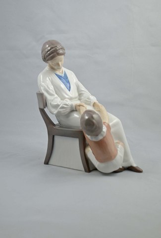 Porcelænsfigur nr. 1642 med motivet af en kvinde med legende barn fra B&G.
