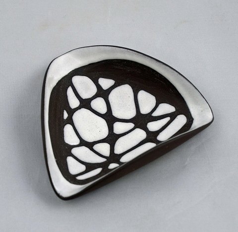 To fade og et askebæger med grafiske motiver med afrikansk inspiration. Michael Andersen, Bornholm Keramik, Design Marianne Starck. De er alle i meget pæn stand.