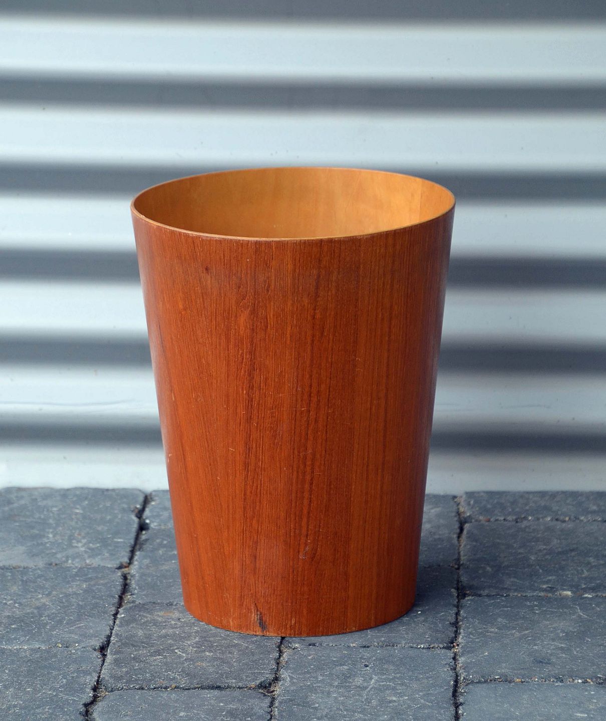 Papirkurv i teak af mærket "Rainbow" nr. 77613. produceret i Sverige. Kurven har enkelte overfladiske ridser men er ellers i pæn stand. H: 33 cm. Ø: 25 cm.