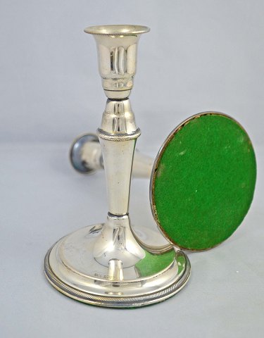 Et par sølvstager fra sølvsmeden Sv. Toxværd, København (stemplet S.V.T 830 s) . Stagerne er i pæn stand. H: 16 cm. Ø: 10 cm.
