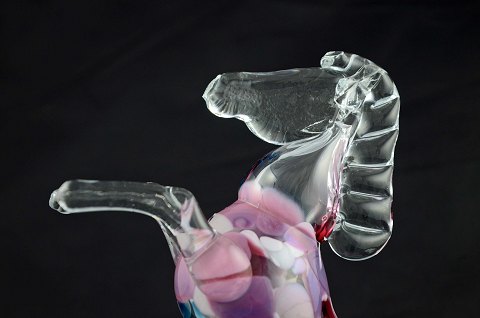 Glasfigur af hest i lyserød og lilla nuancer. Figuren er i perfekt stand.