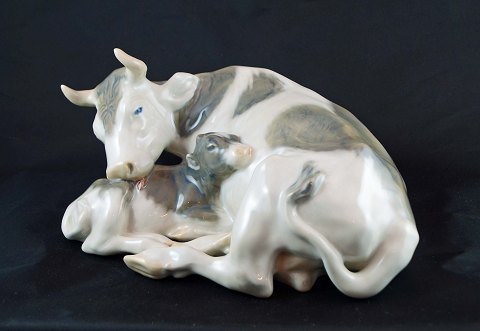 Kgl. porcelænsfigur "Ko med kalv" nr. 800 af Knud Kyhn for Royal Copenhagen.
