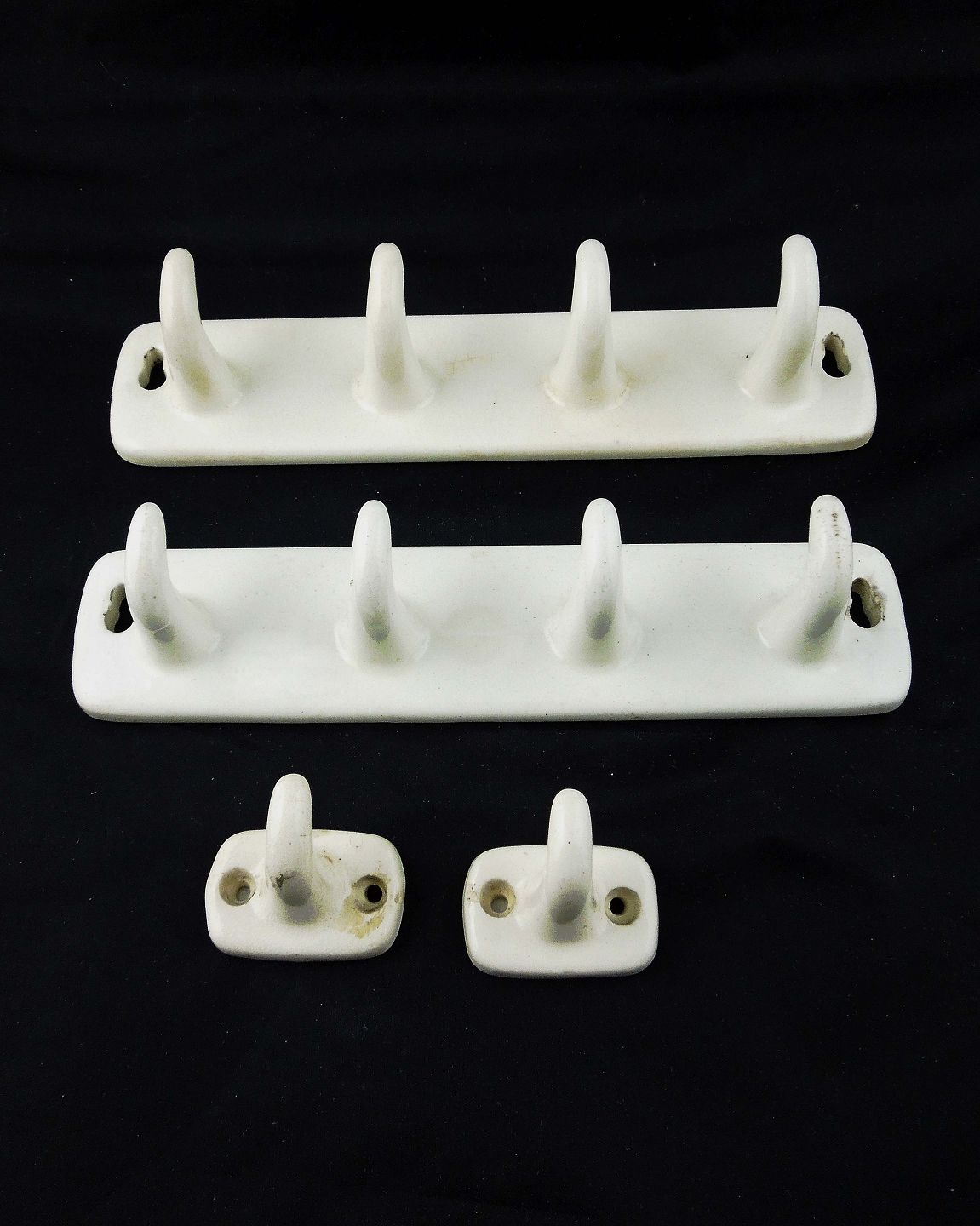 Hvide fajance knagerækker fra Aluminia. De er i god stand.