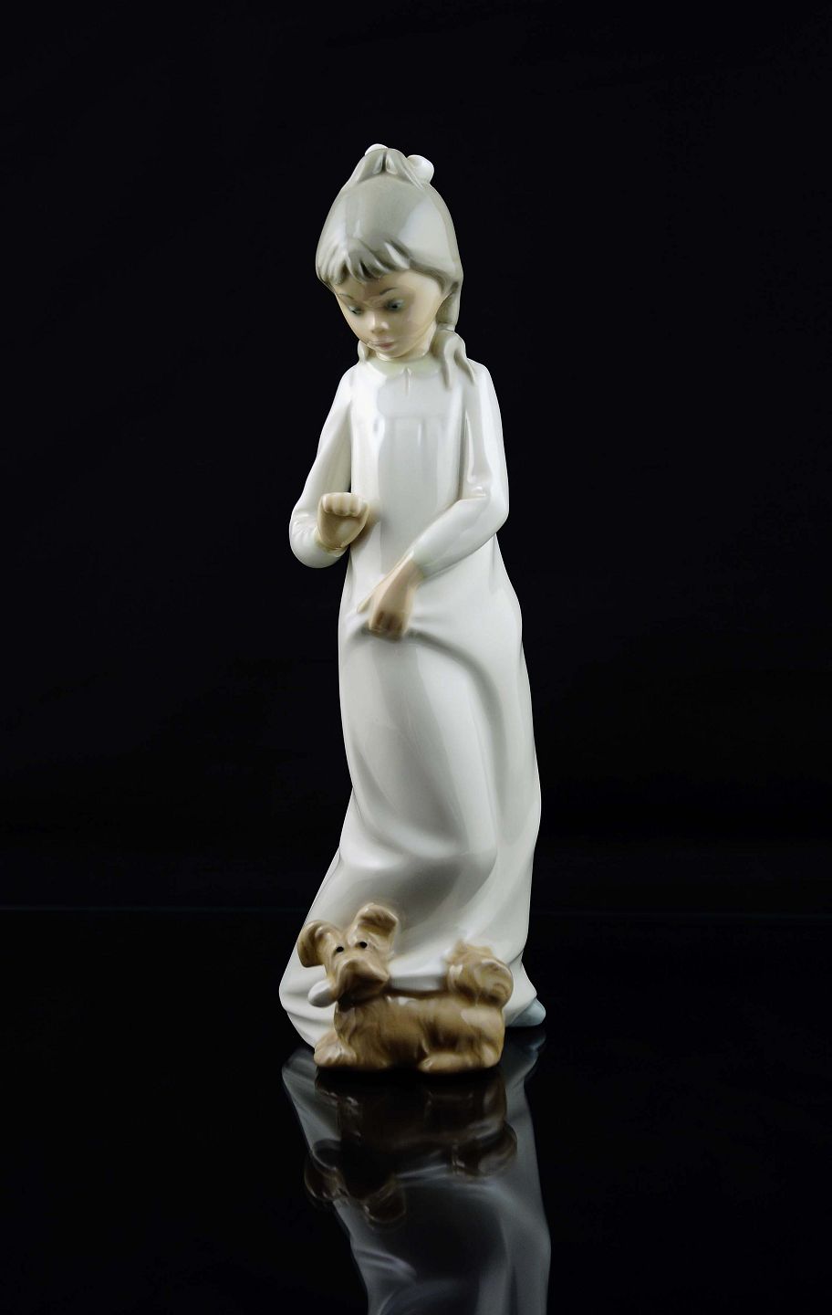 Spansk figur i porcelæn med motiv af pige og hund. Figuren er stemplet Zaphir made in Spain. Figuren er i perfekt stand. H: 26 cm. B: 9 cm.