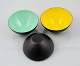 Små krenit skåle i farverne sort, blågrøn og gul. Skålene er i meget pæn stand. H: 4 cm. Ø: 9 cm.