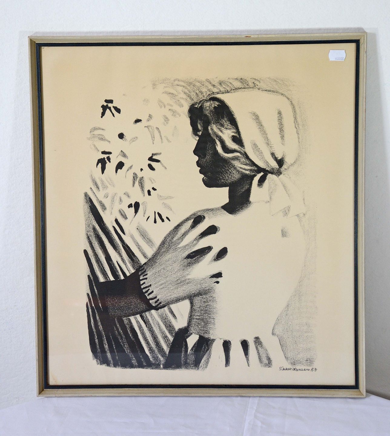 Sikker Hansen Tryk med motiv af kvinde bærende neg.