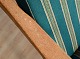 Tre styk lænestole med stofbeklædte hynder designet af H. Brockmann-Petersen. Intakte. Enkelte brugsspor på armlæn og sæder.