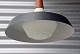 Loftslampe pendel med teaktop og opalhvid glas samt skærm af kobber og sortlakeret metal. Intakt glas med enkelte brugsspor på skærmen.