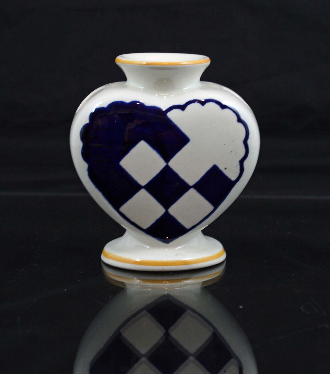 Mørkeblå julestage, hjertestage fra Aluminia. Intakt med en blå prik i glasuren på siden af stagen.