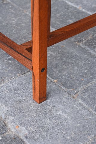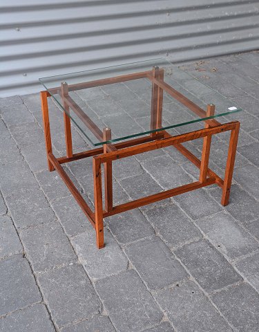 Sidebord eller lille sofabord med stel i palisander og topplade i glas. Intakt med få brugsspor - enkelte ridser i glaspladen.