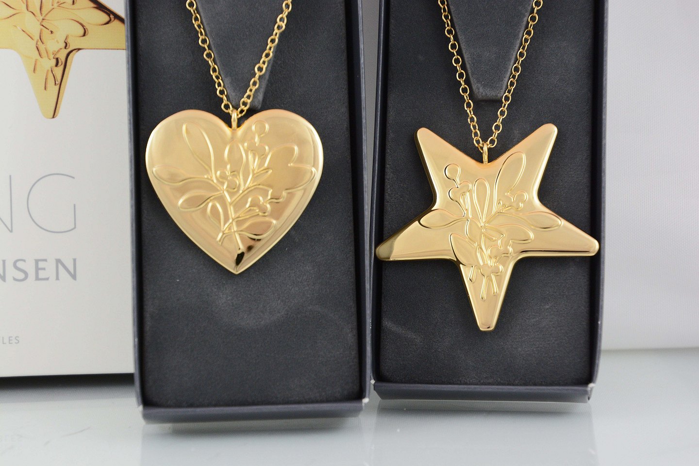 Georg Jensen julepynt. Ornamenter udført i zink alloy belagt med 24 karats guld. Christmas Collectibles designet af GJ Design team 2015