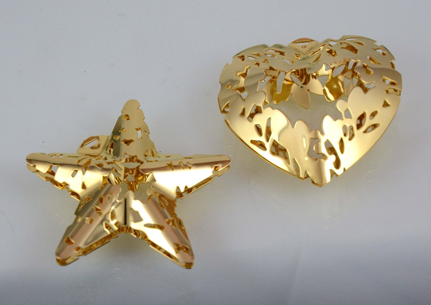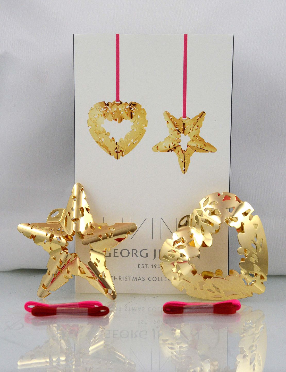 Georg Jensen julepynt. Hjerte og stjerne udført i messing forgyldt med 24 karats guld. Designet af Louise Campell 2015