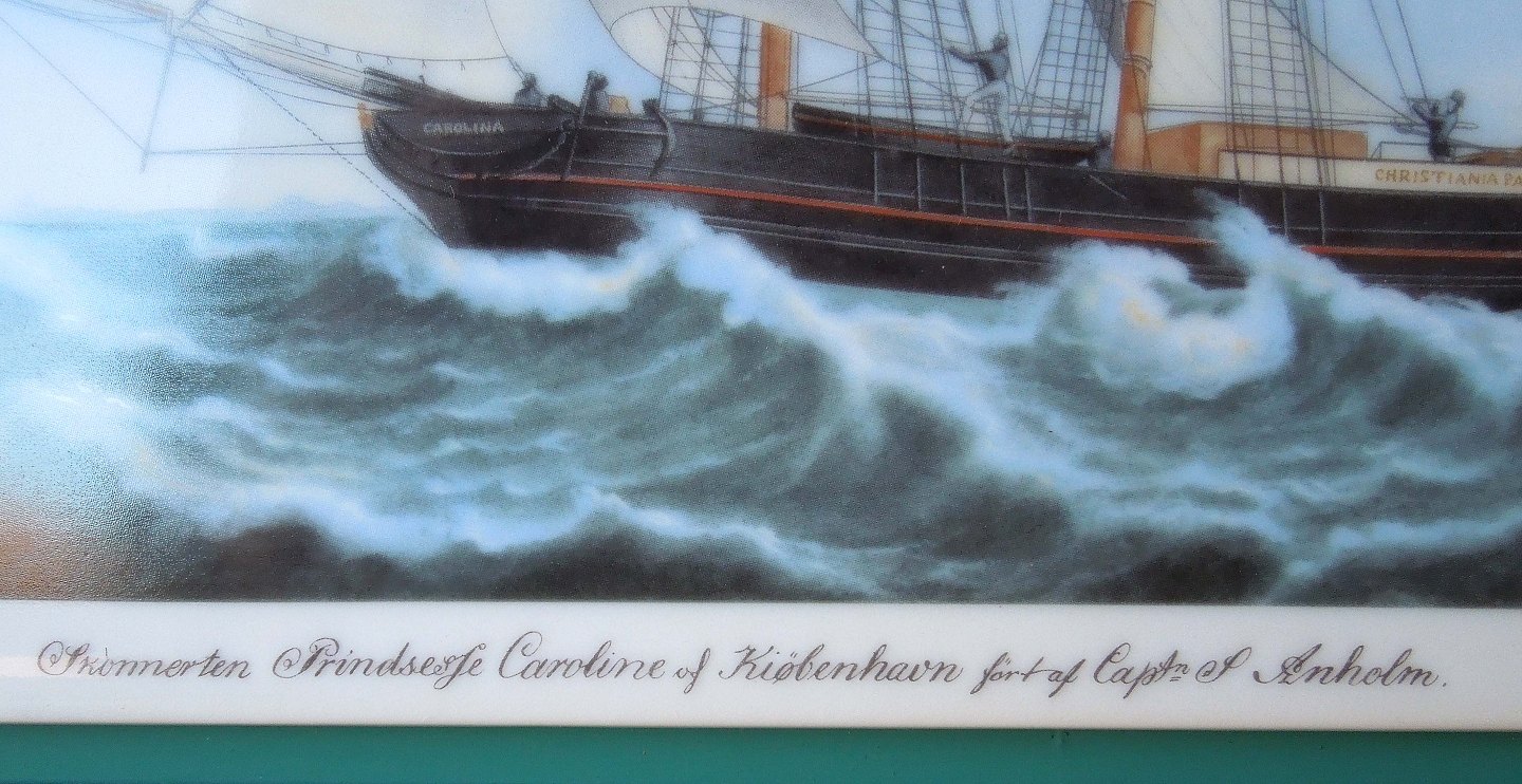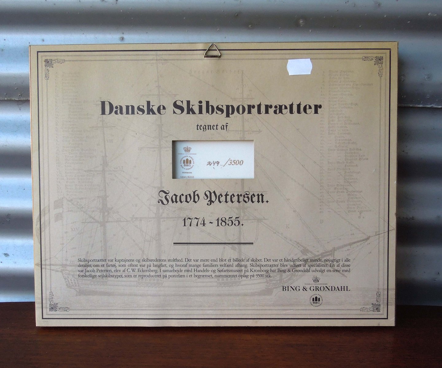 Dansk skibsportræt tegnet af Jacob Petersen 1774-1855. Reproduceret på Bing og Grøndahls porcelæn platte. Numereret 445/3500, porcelænsplade indrammet.