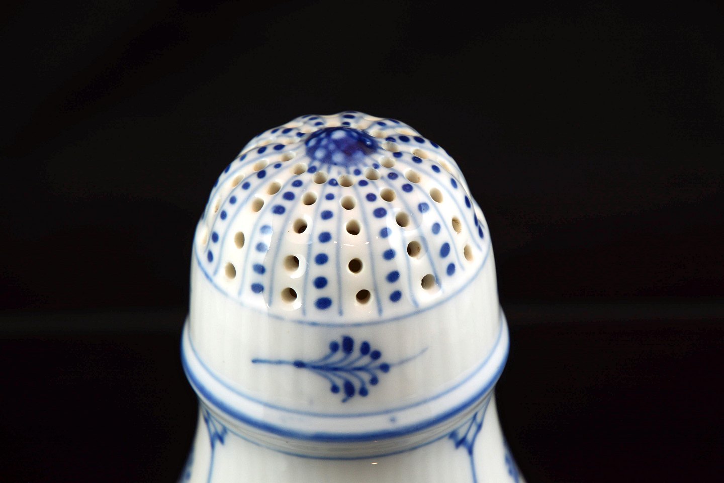 Kongelig musselmalet riflet sukkerstrø dåse (nr. 1/2126). Intakt 2. sortering