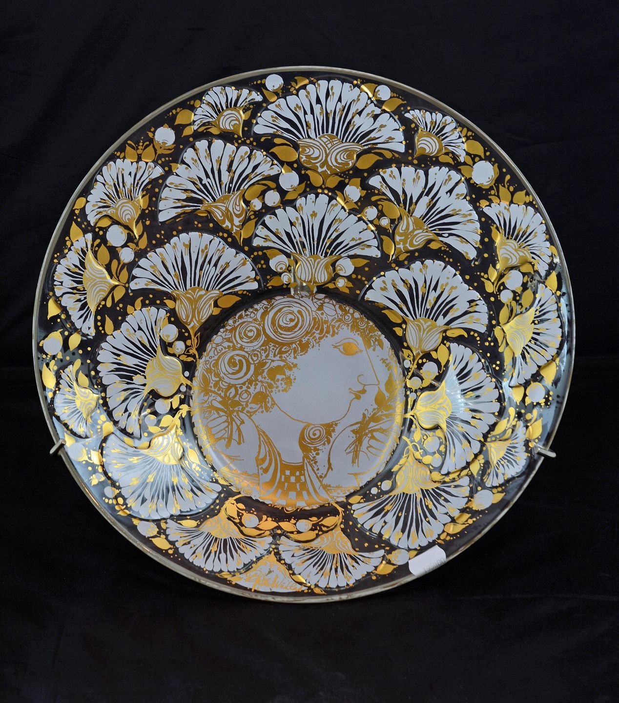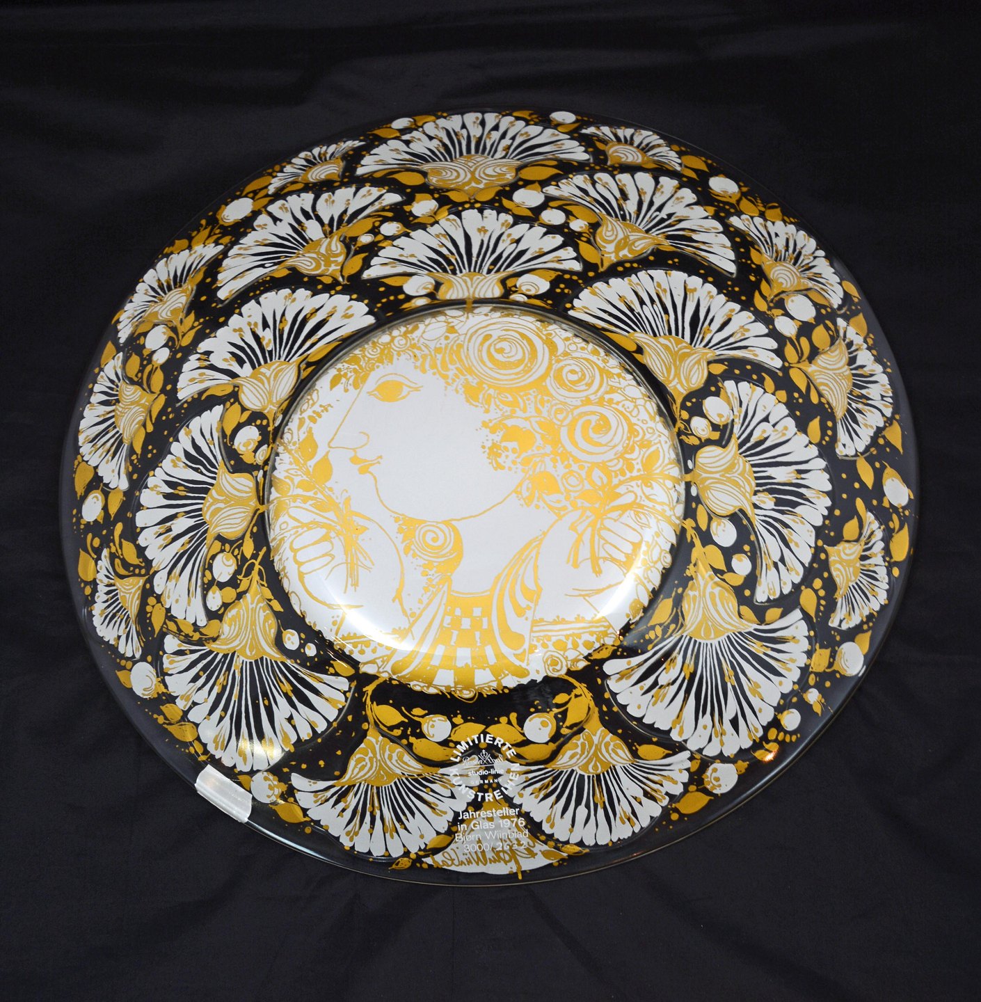 Stort glasfad (nr. 3000/2632) af Bjørn Wiinblad for Rosenthal Studio-linie, Germany. Mærket "Limitierte Kunstreihen. Jahresteller in glas 1976."