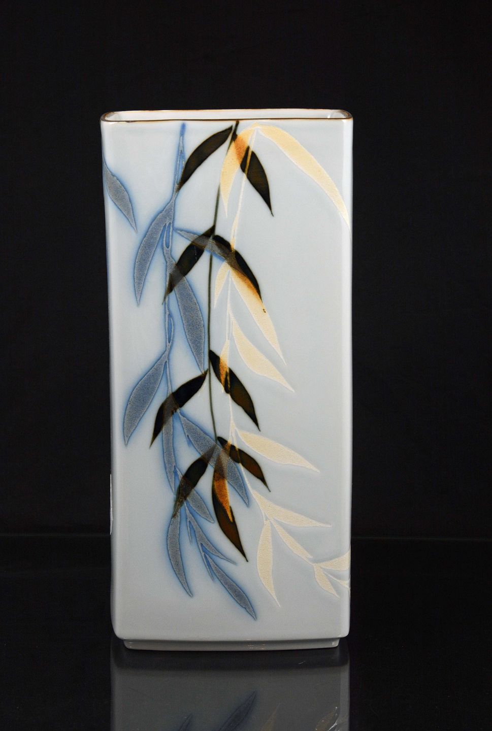 Royal Copenhagen vase nr. 22784 med løv i forskellige farver.